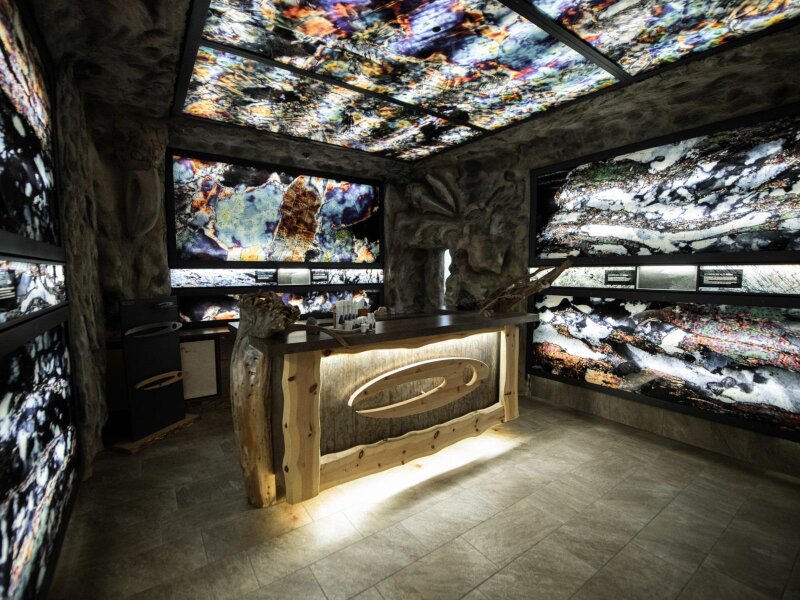 I prodotti non possono solo essere acquistati, potrai anche visitare il Mondo dell'Acqua Curativa di Defereggen (Deferegger Heilwasserwelt): la facciata del punto vendita e la Piazza delle Leggende sono opera dell'artista locale Michael Lang. Qui, l'acqua viene imbottigliata dopo la perforazione.