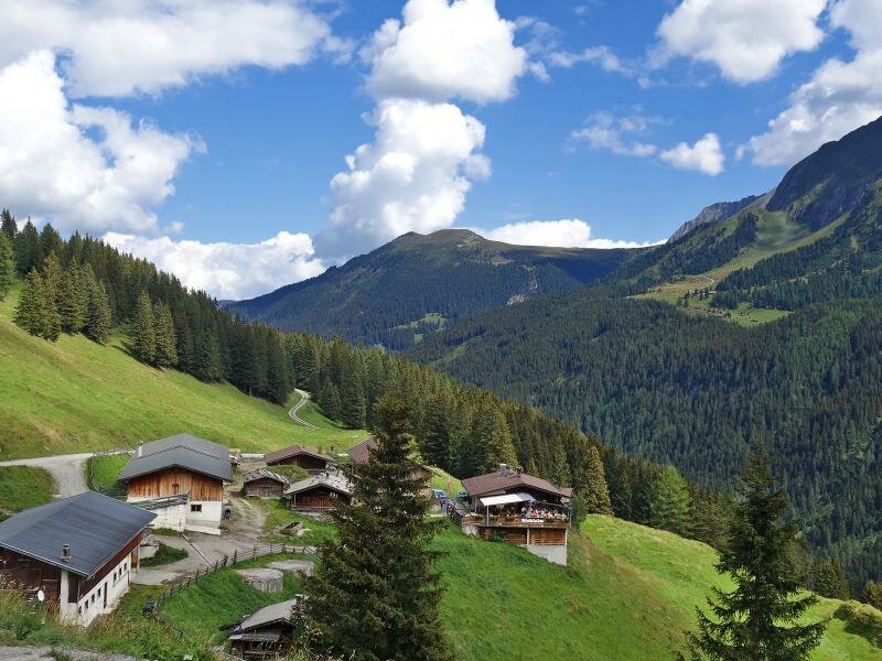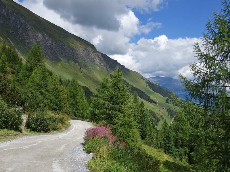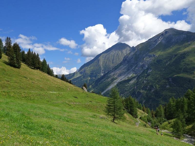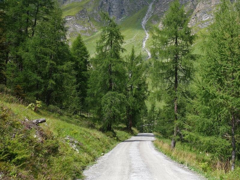 In inverno una famosa area sciistica, in estate meta ideale per escursioni: le malghe di Hintertux. Nel piccolo villaggio iniziano i sentieri n. 17 e 324. Da lì raggiungiamo dopo quasi 3 km la Malga Bichlalm, un insieme di maso e diverse baite con possibilità di ristoro. Il sentiero continua su un’ampia strada forestale, ci avviciniamo al limite degli alberi e la vista si apre sulla valle. Non lontano dal sentiero intravediamo la Cascata Schleier all’imbocco della valle Weitental.