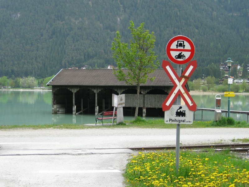 Iniziamo la nostra escursione nel paese Maurach am Achensee, il quale si trova a soli pochi centinaia di metri dal lago. Passando per affascinanti poderi, seguiamo sempre il marciapiede che ci porta a Seespitz, una stazione della linea di navigazione “Achensee-Schifffahrt”, da dove inizia la passeggiata che porta attorno il lago. La stazione Seespitz non è solo famosa perché dispone di un’antica cavana per mettere al riparo le barche, ma perché rappresenta allo stesso tempo una stazione del Trenino Achenseebahn, la ferrovia a cremagliera a vapore più antica d’Europa (1889), e perché passano le navi della famosa navigazione sul Lago Achensee.