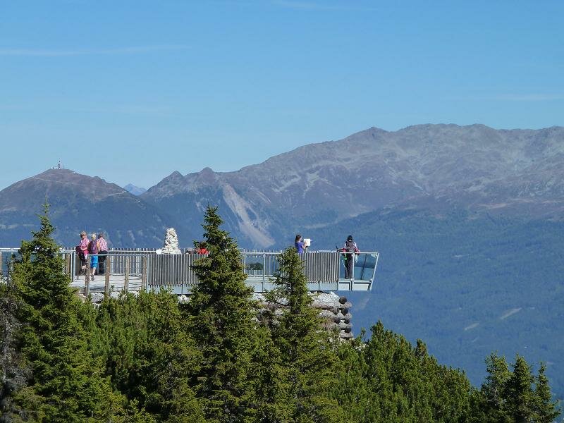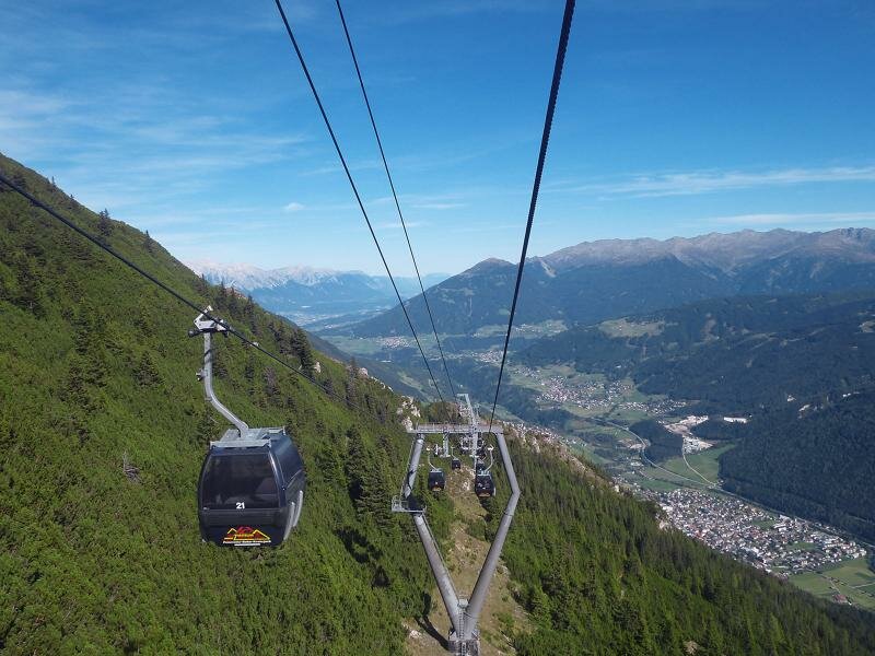 Dopo pochi minuti raggiungiamo il punto panoramico Stubaiblick, che apre la vista sulle montagne Kalkkögel, sui Monti del Karwendel e sulle pre-Alpi del Tux. Rientriamo a Fulpmes con la Cabinovia Kreuzjoch.