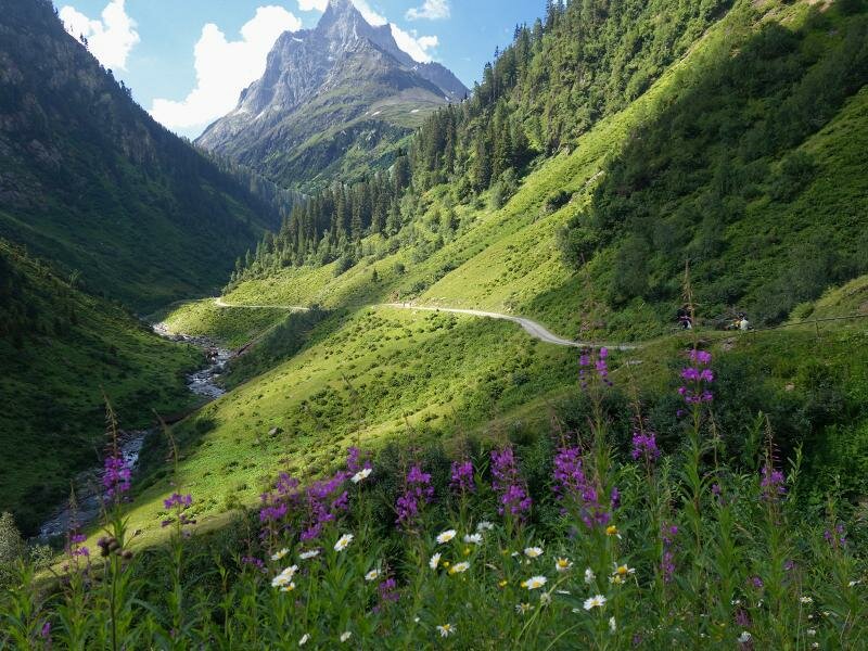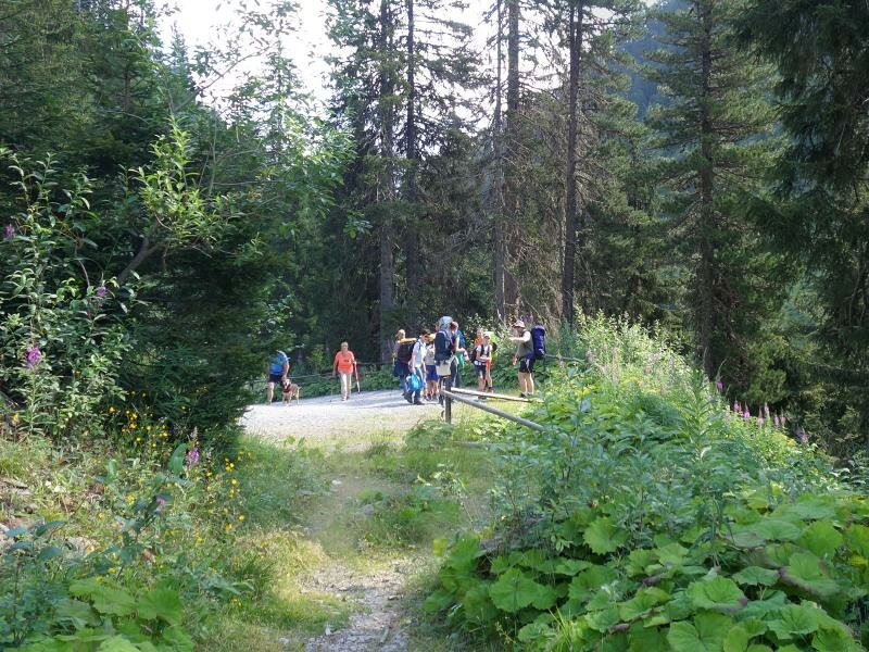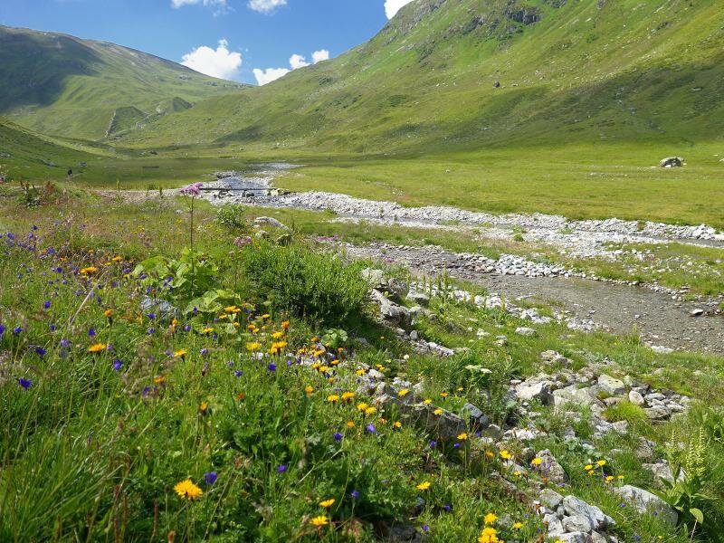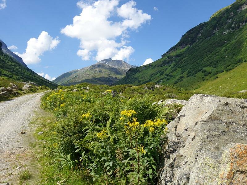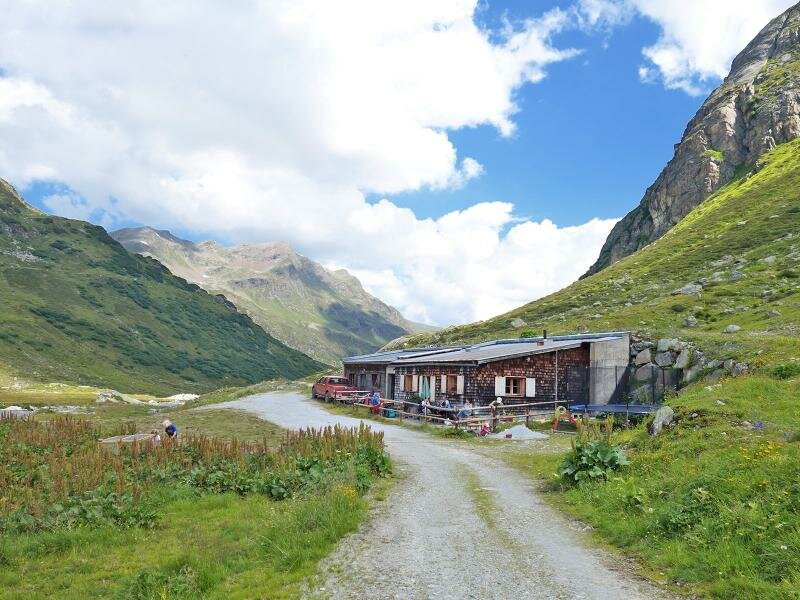 Presso il rifugio Konstanzer Hütte (1.688 m.s.l.m.), l’unica possibilità di ristoro lungo il percorso, a sinistra si dirama la valle Fasultal e a destra la valle Schönverwalltal. Seguiamo la strada forestale che porta in direzione rifugio Heilbronner Hütte per circa 90 minuti fino a quando raggiungiamo il piccolo rifugio Schönverwall-Hütte il quale, circondato da prati alpini, si trova al centro della valle. La larga e fiorita valle invita a trattenersi. Facciamo ritorno lungo la stessa strada dell’andata.