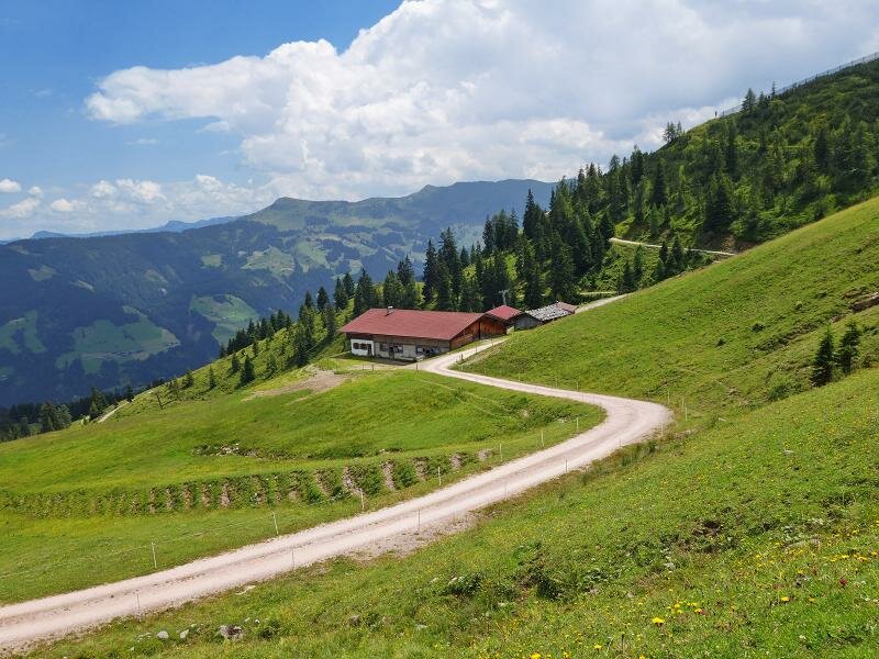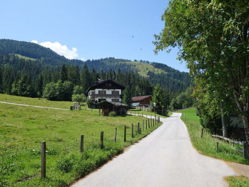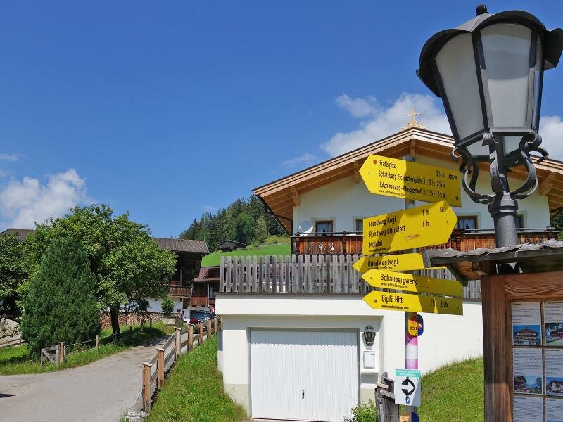 Punto di partenza dell’escursione è Thierbach, un piccolo paese montano nel comune di Wildschönau raggiungibile in auto passando per la località Mühltal. Seguiamo il segnavia in direzione Schatzbergalm. Un bel sentiero forestale, all’inizio in ripida salita, porta attraverso il bosco in direzione Raiher Kopf, una collina boschiva. La strada sterrata si snoda sempre più in alto e all’incirca dopo un’ora di cammino si sviluppa sul versante montano in direzione sud.