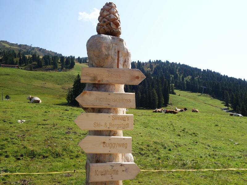 Il largo sentiero con poco dislivello porta direttamente a Malga Kreuzwiesenalm, dove ci godiamo la bella vista e le pietanze tipiche della valle Zillertal. Una particolarità che piacerà soprattutto ai bambini si trova all’inizio del nostro percorso, a Malga Rosenalm: il Fichtenschloss. Questo castello in legno di abete (Fichte = abete) con quattro torri accessibili è un vero e proprio parco giochi avventura.