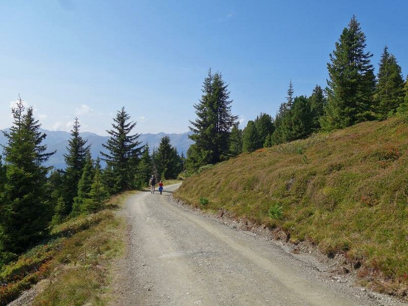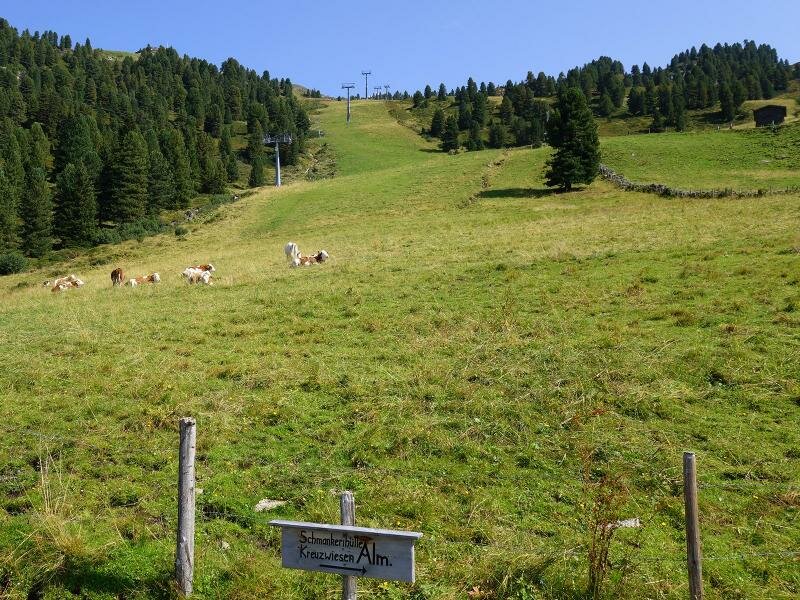Arriviamo a Malga Rosenalm, il nostro punto di partenza, con gli impianti di risalita che partono da Rohr presso Zell am Ziller. Seguiamo sul primo tratto il sentiero n. 10 (sentiero panoramico) verso nord-est e, dopo un tornante nel bosco, il sentiero n. 11 verso sud. Fate attenzione a non scambiare i segnavia “Kreuzwiesenalm” con quelli che indicano “Kreuzjochhütte” oppure “Kreuzjochalm”.