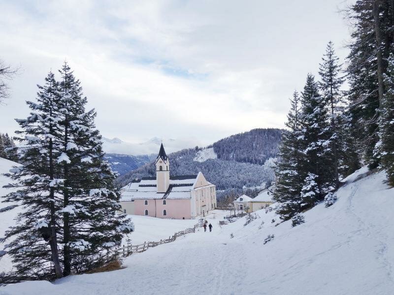 Il Santuario Maria Waldrast tra le valli Stubai e Wipptal è una meta raggiungibile attraverso una bella escursione invernale.